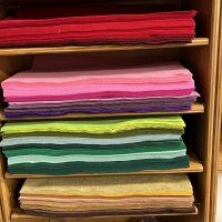 It's the season for felt! Wool rayon felt is great for seasonal decorating or holiday ornaments - not to mention birthday crowns! Over 20 new colors arrived last week. Come choose your favorite color and launch into fabric fun!